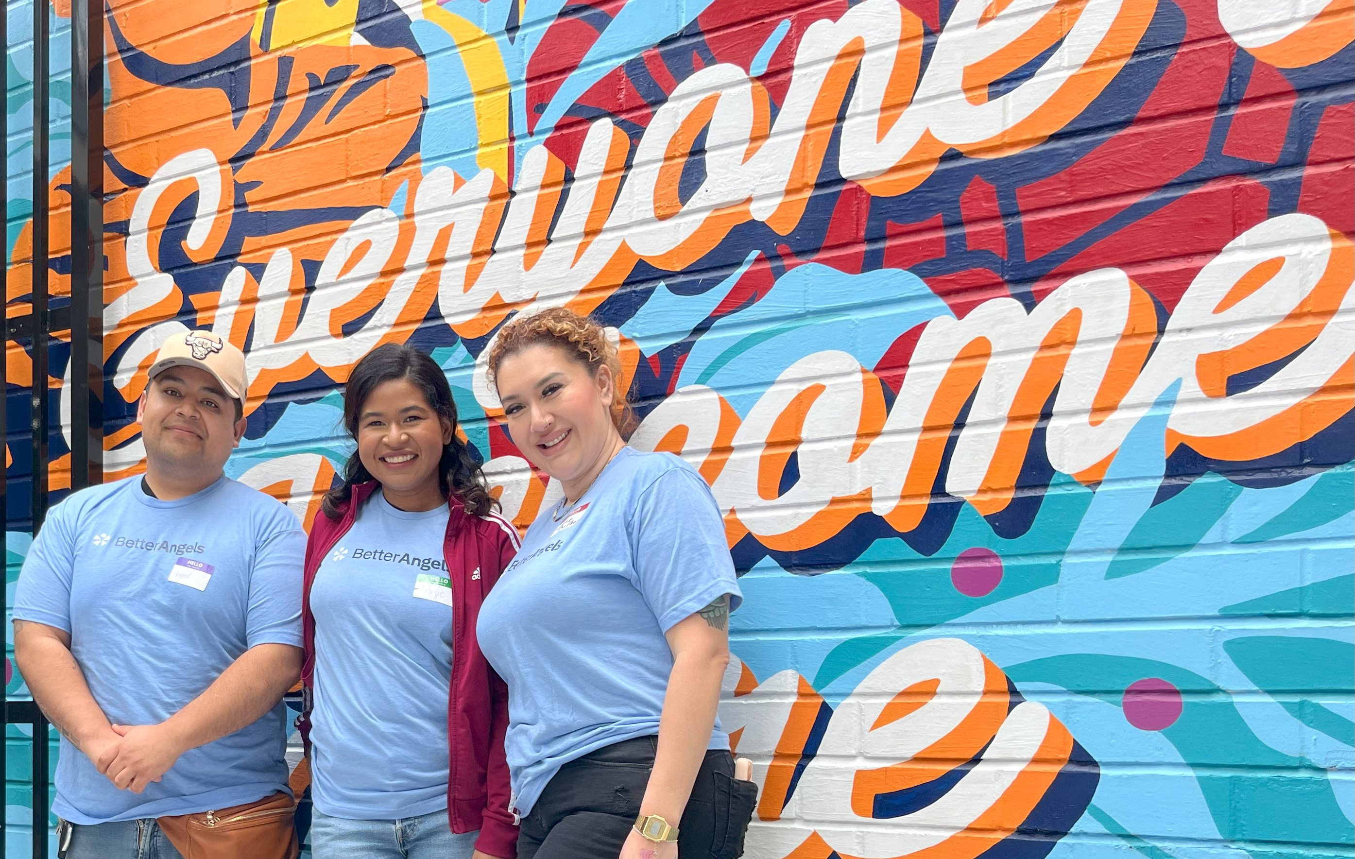 Wear: Please wear clothes you don't mind getting dirty. If you've volunteered with us before, wear your Better Angels T-shirt to show your support!
